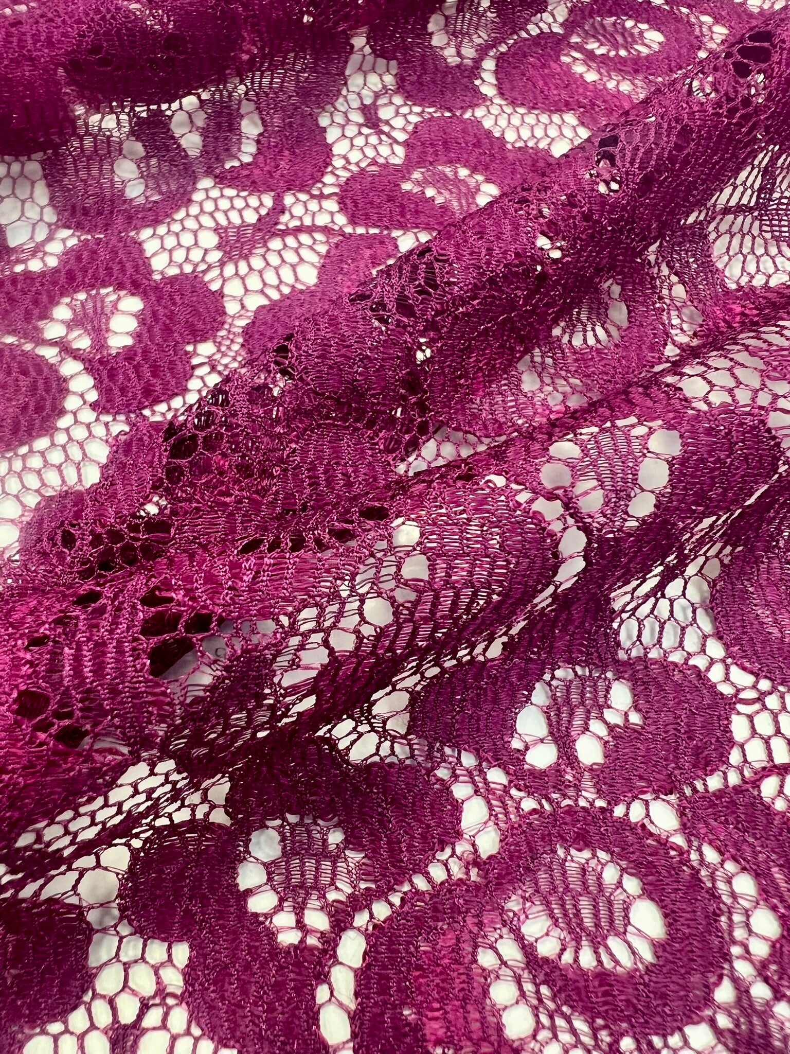 Pizzo disegno floreale in viscosa/nylon colore porpora . Ideale per cerimonia.